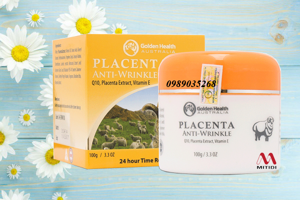 -Kem nhau thai cừu Golden Health Placenta Anti-Wrinkle được bổ sung nhiều chất dinh dưỡng thiên nhiên cho da như nhau thai cừu, mỡ cừu tinh khiết, Collagen, lô hội, vitamin E.