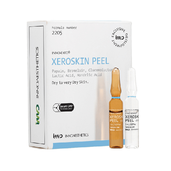 Peel da tại nhà da khô Innoaesthetics INNO-EXFO® XEROSKIN PEEL kiểm soát sự lắng đọng của lớp sừng trên da khô và mất nước, cải thiện khả năng nén chặt của lớp sừng, tái lập sự cân bằng của lớp màng hydrolipid và phục hồi độ ẩm, độ mềm mại và độ sáng của da..