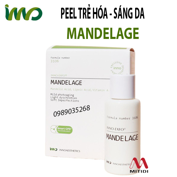 Peel trẻ hóa da Innoaesthetics MANDELAGE chứa Mandelic Acid là một hợp chất hóa học thuộc nhóm alpha-hydroxy acid (AHA), được ứng dụng rộng rãi với các công dụng nổi bật như làm sáng da, giảm tình trạng tăng sắc tố và tẩy tế bào chết trên bề mặt da.