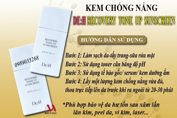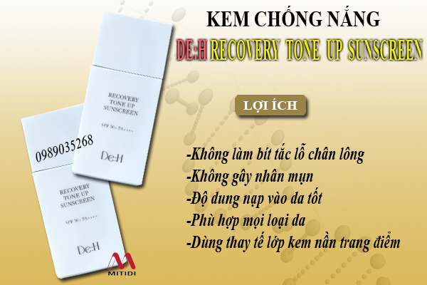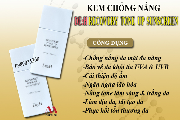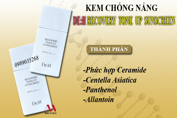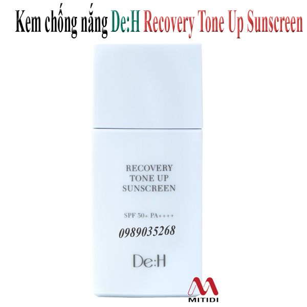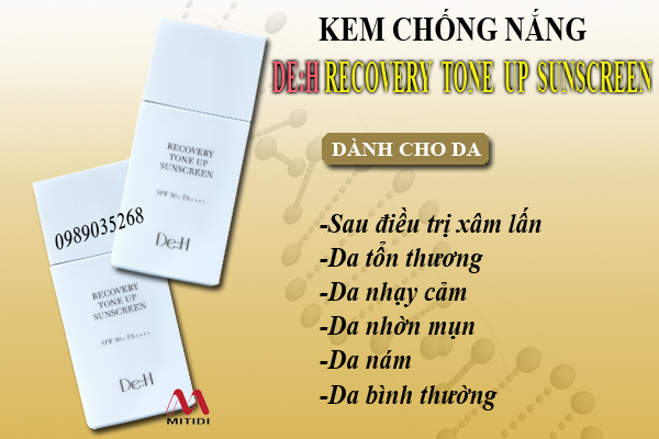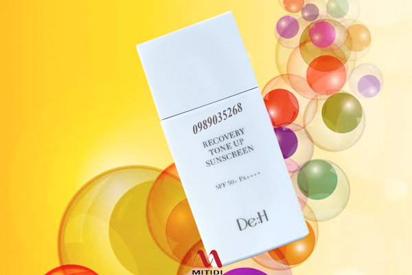 Kem chống nắng De:H với công thức màu Sky-blue đặc biệt. Sản phẩm giúp nâng tông, phục hồi và bảo vệ da tuyệt đối khỏi các tổn thương cả bên trong và bên ngoài. Kem chống nắng De:H là dòng chống nắng lai giữa Vật lý và Hóa học có các chỉ số SPF 50+ PA++++