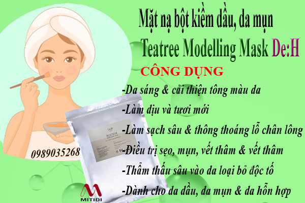 Mặt nạ kiềm dầu, làm sáng cho da mụn Teatree Modelling Mask De:H với thành phần chính chiết xuất trà xanh, mặt nạ TeaTree có khả năng giảm viêm, kháng khuẩn, hỗ trợ kiềm dầu và đặc biệt hỗ trợ điều trị mụn tối ưu.