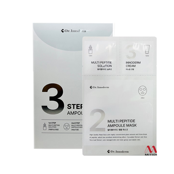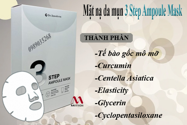 Mặt nạ Dr.Innoderm da mụn 3 bước – 3 Step Ampoule Mask cung cấp dưỡng chất nuôi dưỡng làn da hiệu quả, phục hồi tế bào da tổn thương, yếu do tác động từ bên ngoài, cho làn da trắng sáng và thu nhỏ nhỏ lỗ chân lông, cân bằng độ ẩm tự nhiên.