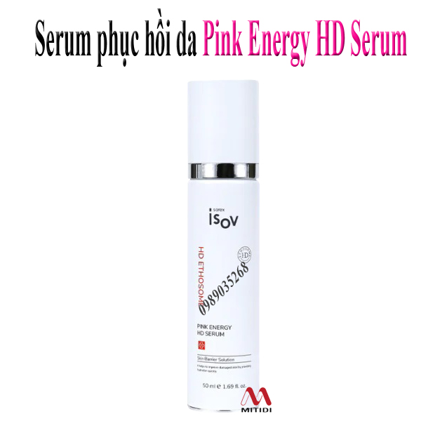 Serum phục hồi da tổn thương Pink Energy HD Serum ISOV chứa tế bào gốc từ tảo biển, ứng dụng công nghệ HD Ethosome vận chuyển hoạt chất vào trung bì giúp phục hồi da sau liệu trình thẩm mỹ.