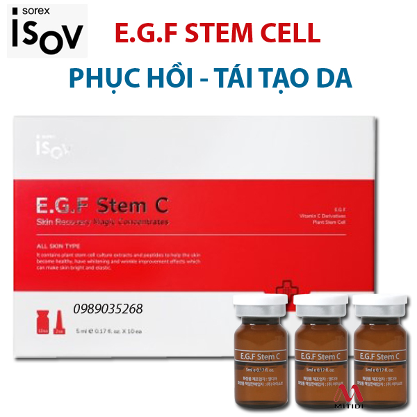 Tinh chất phục hồi da iSOV E.G.F Stem C Với chiết suất từ những thảo dược quý hiếm và các dưỡng chất EGF, Vitamin C, Niacinamide, Adenosine, HA, Acetyl hexapeptide-8, dịch chiết xuất tế bào gốc từ hoa Nhung tuyết, Collagen thủy phân, Arbutin… E.G.F Stem C giúp nuôi dưỡng và cải thiện da một cách vô cùng hiệu quả.