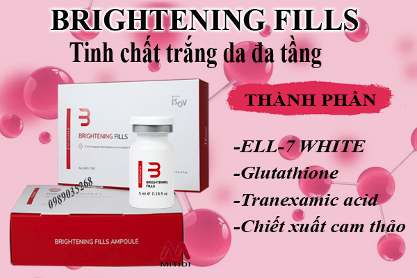 Tinh chất trắng da đa tầng iSOV Brightening Fills imang những ưu điểm vượt trội giúp cải thiện 85% tình trang da do các sắc tố Melanin gây ra, làm ức chế kích thích tăng sản xuất Melanin dưới da, cân bằng về nội tiết tố và tái tạo các cấu trúc sợi protein (collagen, elastin, laminin).
