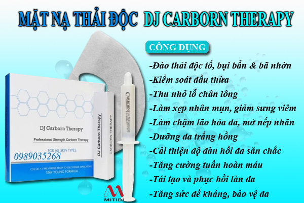 Mặt nạ DJ Carbon Therapy Mask Là loại mặt nạ được kết hợp bởi hai thành phần mask và gel cacbon, giúp sản sinh ra gel CO2 có tác dụng duy trì độ đàn hồi cho làn da săn chắc và trắng sáng.