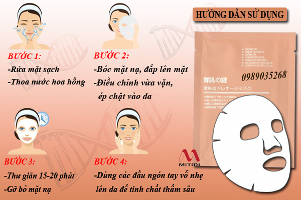 -Mặt nạ nhau thai có thể sử dụng cho da yếu, tổn thương do mụn, da bị hư tổn sau khi dùng kem trộn, sau điều trị laser, da xỉn màu, da nám, tàn nhang.