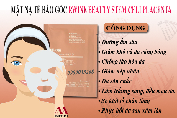 Mặt nạ tế bào gốc Rwine Beauty Stem Cell Placenta Mask Nhật Bản chứa: