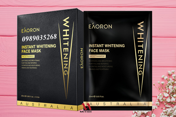 Mặt nạ trắng da Eaoron Instant Whitening Face Mask sử dụng công nghệ mới nhất kết hợp các thành phần làm trắng tự nhiên để làm đều màu da hiệu quả, giảm thiểu các đốm đen và sắc tố, duy trì làn da sáng khỏe.