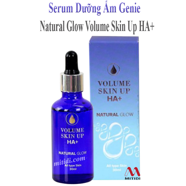 Serum dưỡng ẩm Genie Volume Skin Up HA+ Natural Glow có cấu trúc dạng phân tử nước lỏng siêu nhỏ cho khả năng thẩm thấu cực nhanh vào tận lớp trung và hạ bì.