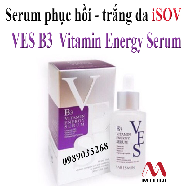 Serum trắng da iSOV VES B3 Vitamin Energy chứa những thảo dược và các dưỡng chất quý hiếm, giúp phục hồi, tái tạo tế bào da, tạo da trắng sáng, tăng cường độ đàn hồi và săn chắc cho làn da, làm mịn đi những đường nhăn trên gương mặt,
