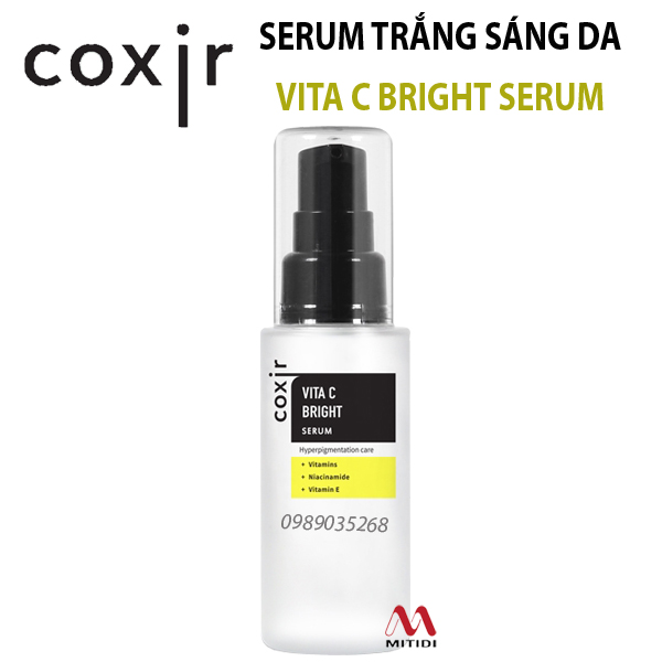 Serum làm trắng da Vita C Bright Serum chứa nhiều vitamin giúp giữ cho làn da sáng. Không những làm sáng da vùng tối màu, tinh chất Vita C còn cải thiện, vết thâm nám, giúp da trắng sáng từ trong ra ngoài. Thông qua tác dụng làm trắng da của vitamin. Vita C của Coxir sẽ giúp bạn luôn tự với làn da tươi sáng trở về tuổi thanh xuân
