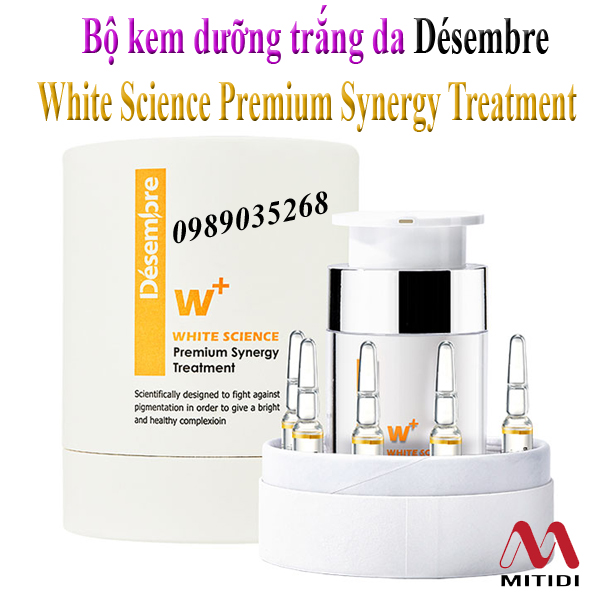 Bộ kem dưỡng trắng da Désembre White Science Premium Synergy Treatment chứa thành phần thực vật thiên nhiên giúp bảo vệ làn da và làm trắng an toàn mà không có bất kỳ tác dụng phụ nào, làm cho da trắng sáng tuyệt vời