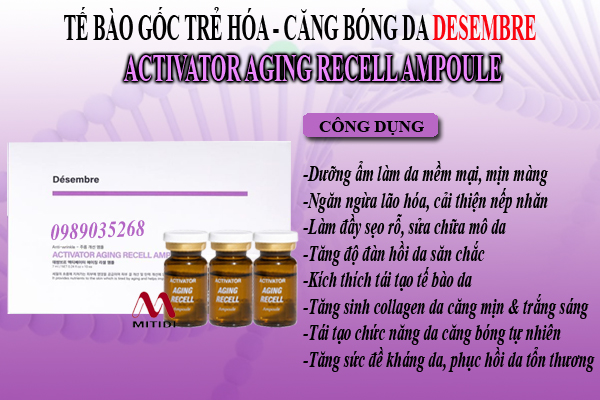 Tinh chất trẻ hóa căng bóng da Désembre Activator Aging Recell Ampoule tinh chất Micro cô đặc giúp làn da chống chọi lại sự lão hóa dần theo thời gian và các tác động tiêu cực từ môi trường.