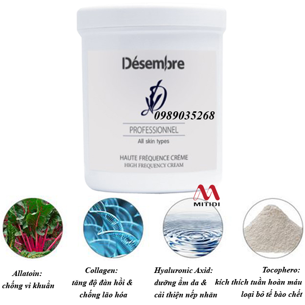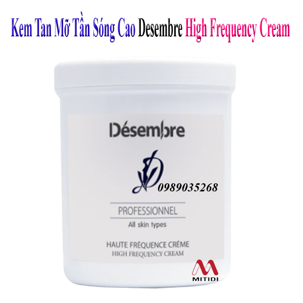 Kem tan mỡ tần sóng cao Desembre High Frequency Cream với công thức tươi mát và mềm dẻo cung cấp dưỡng chất nuôi dưỡng và tăng độ đàn hồi. Với tính năng dẫn điện tuyệt vời giúp truyền tần sóng đạt hiệu quả tối đa. Áp dụng cho da mặt và toàn thân