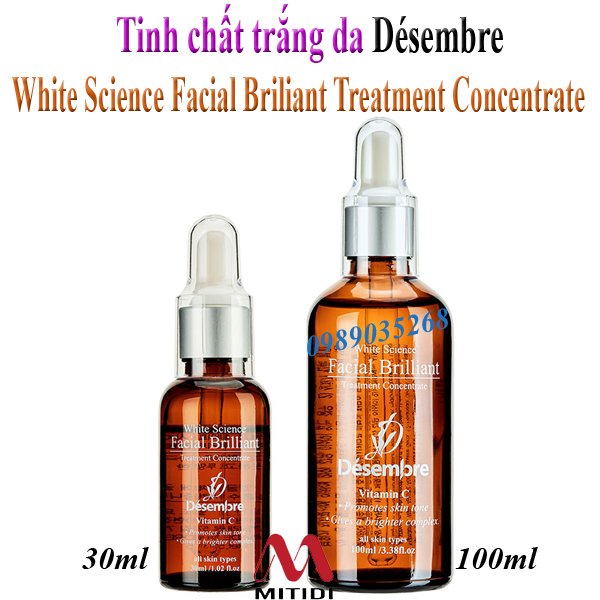 Tinh chất trắng da giảm nám Desembre Briliant Treatment Concentrate giúp giảm sạm nám, tàn nhang và các khuyết điểm, cải thiện da nhờn bằng cách ngăn chặn việc tiết nhờn, dưỡng ẩm và làm da ẩm mượt, ngăn chặn hình thành sắc tố Melanin giúp da trắng sáng.