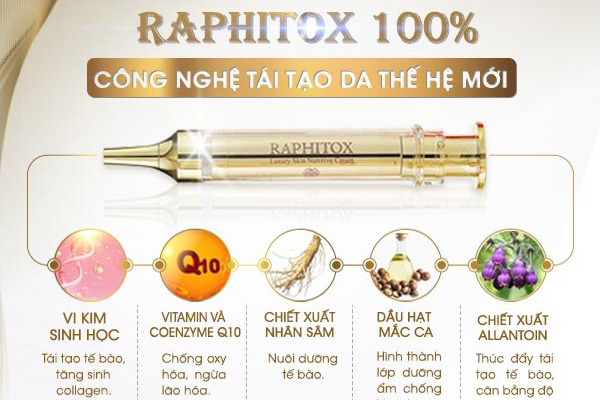 Ngoài tinh thế vi kim với sức mạnh đặc trị kỳ diệu, Raphitox Luxury 100% còn chứa nhiều thành phần quý: