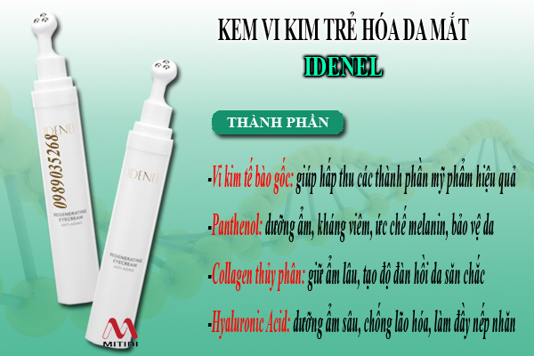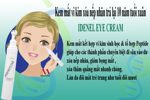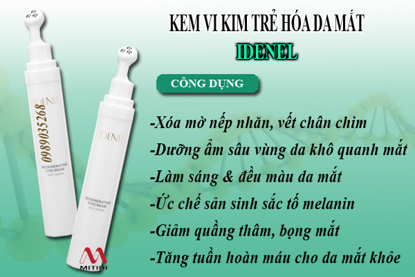 Kem mắt vi kim xóa nhăn IDENEL chuyên xoá thâm, chống nhăn, giảm bọng mắt. Với sự kết hợp giữa công nghệ vi kim sinh học và tổ hợp peptide sẽ cung cấp dưỡng ẩm tái cấu trúc hệ collagen xóa mờ nếp nhăn.