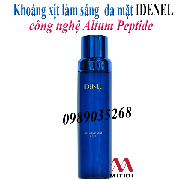 Khoáng xịt làm sáng da Intensive Mist công nghệ Altum Peptide Idenel với thành phần 77% phân tử nước Collagen nhỏ hơn 300 Dalton và ứng dụng công nghệ Altum Peptide giúp tăng sinh Glutathione giúp căng bóng và dưỡng ẩm sâu cho da.