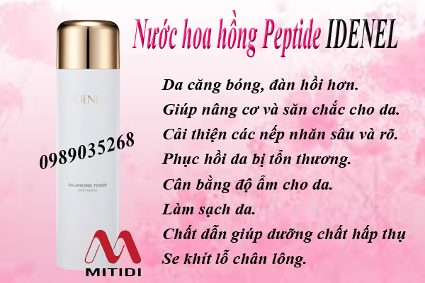 Nước hoa hồng Peptide Idenel là sản phẩm mới cho ra mắt thị trường bởi hãng mỹ phẩm nổi tiếng IDNENEL Hàn Quốc điều chế bởi Viện nghiên cứu SR Biotek, giúp chăm sóc da tại nhà hiệu quả và an toàn.