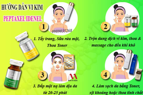 Hướng dẫn sử dụng combo Peptaxel Idenel phục hồi làm trắng da