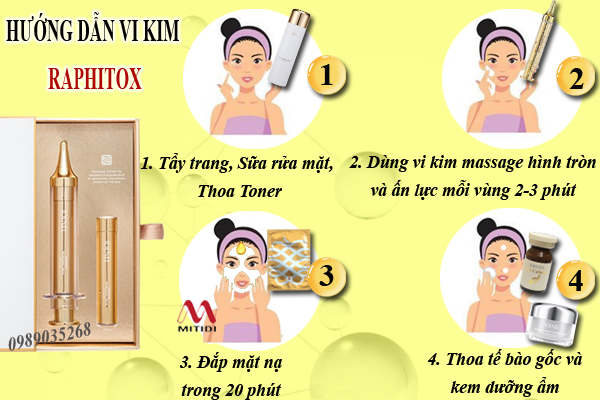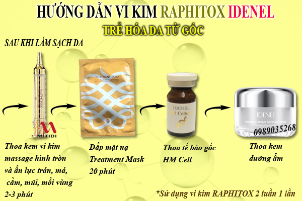 Hướng dẫn sử dụng Vi kim sinh học Raphitox Idenel: Quy trình dành cho nâng cơ da, làm trắng sáng, xóa nhăn, lỗ chân lông to