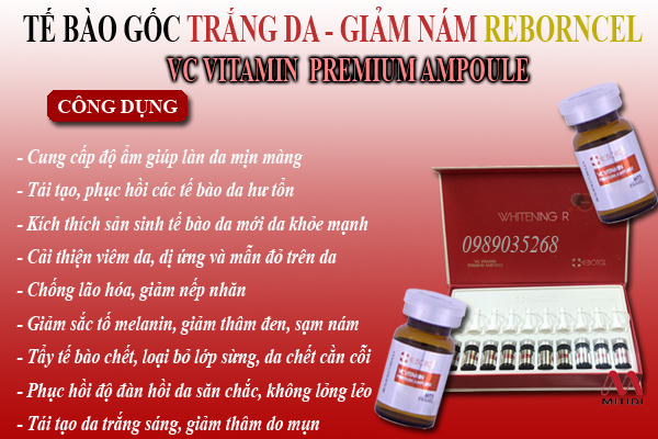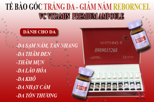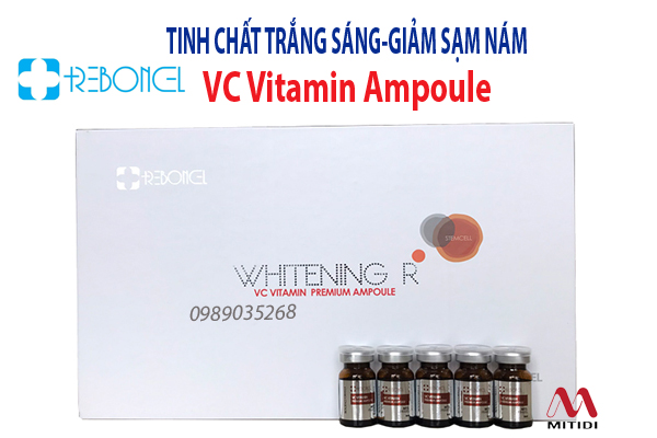 Tinh chất giảm nám Reborncell VC Vitamin Ampoule là sản phẩm cao cấp có tác dụng làm trắng sáng da dạng lỏng chứa Vitamin C tinh khiết nồng độ cao. Sản phẩm cải thiện nám tàn nhang nhờ áp dụng công nghệ ổn định Vitamin C cùng với Arbutin là các thành phần làm trắng da.