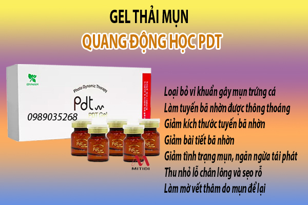 PDT là viết tắt của từ Photo Dynamic Therapy hay còn gọi là quang động lực học. PDT là phương pháp sử dụng chất nhạy cảm ánh sáng thoa lên da, ủ trong một thời gian nhất định để chất này ngấm vào đơn vị nang lông tuyến bã. Sau đó sử dụng ánh sáng để hoạt hóa chất nhạy cảm ánh sáng này, tạo ra oxy nguyên tử và các gốc oxy hóa mạnh, phá hủy tuyến bã và tiêu diệt vi khuẩn gây mụn.