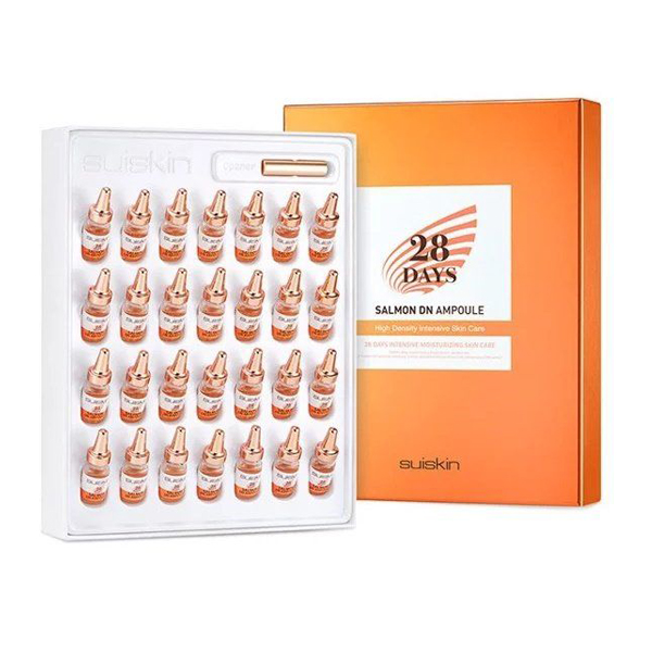 Tinh chất cá hồi Suiskin Salmon DN Ampoule 28 Days chứa chiết xuất từ trứng cá hồi quý giá và bổ dưỡng rất phù hợp với những cấu trúc của làn da và đặc biệt là da nhạy cảm, da có vấn đề: da mụn, nám, da tổn thương, da lão hóa.