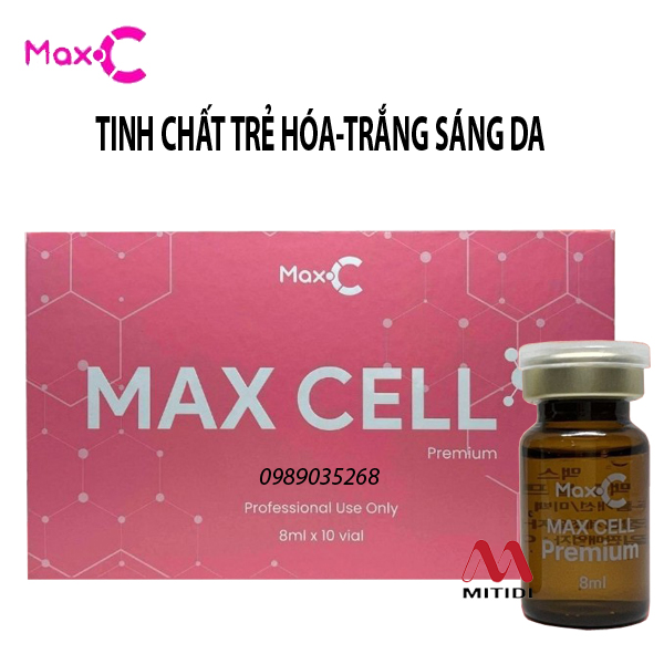 Tinh chất Max Cell Premium được chiết xuất từ sự kết hợp của các loại mầm thực vật: hoa hồng Damask. lúa mạch, carrot, trà xanh, rau má và cây phỉ. Tế bào giúp cải thiện tone màu da, làm trắng da một cách hiệu quả, ngăn ngừa sự xuất hiện của nám và tàn nhang. Sản phẩm cũng giúp tăng sinh collagen và elastin, cải tạo làn da từ bên trong giúp da mềm mại, căng mịn, duy trì độ ẩm lâu dài cho da.