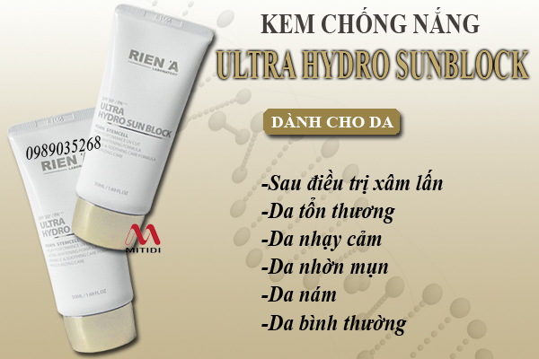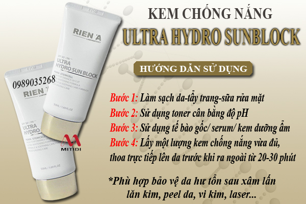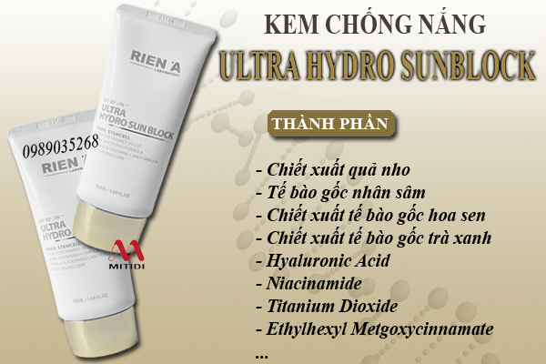 Kem chống nắng Rien'a Ultra Hydro Sunblock có khả năng phục hồi làn da hoàn hảo, giúp nuôi dưỡng và tái tạo các tế bào da giúp da luôn căng bóng, mềm mịn suốt ngày.