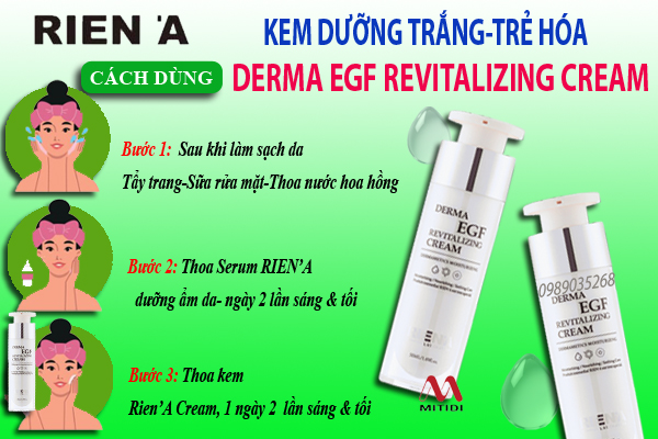 Kem dưỡng trắng trẻ hóa da Rien'A DERMA EGF REVITALIZING CREAM với tế bào gốc tăng trưởng EGF. Cấp ẩm sâu cho da, chống lão hóa, giúp da trắng sáng, mịn màng