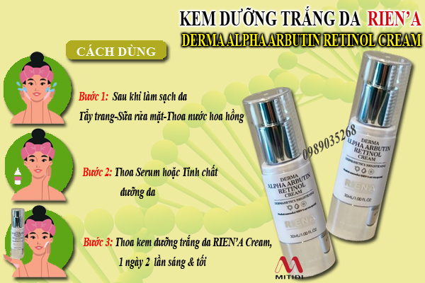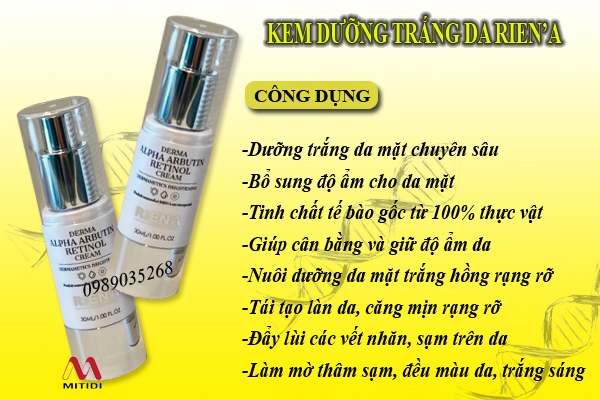 Công dụng kem trắng da Rien’A Derma Alpha Arbutin Retinol Cream