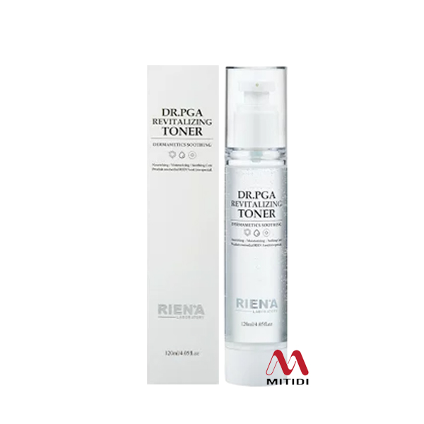 Nước hoa hồng RIEN'A Dr PGA Revitalizing Toner cân bằng giúp giữ ẩm, se nhỏ lỗ chân lông, nuôi dưỡng phục hồi da yếu tăng khả năng hấp thụ dưỡng chất vào sâu trong da. Tạo lớp màng chắn cho da, dưỡng da sáng mịn, chăm sóc sớm vấn đề về lão hóa da.