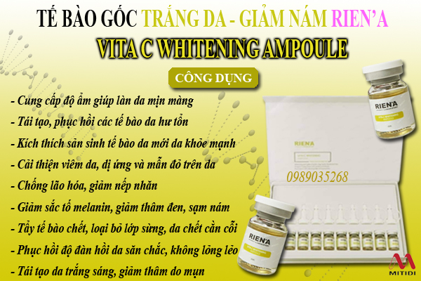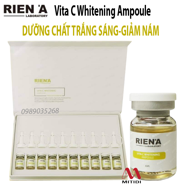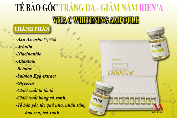 Tinh chất dưỡng trắng da Rien'a Vita C Whitening Ampoule làm trắng sáng da đặc trị nám tàn nhang với các thành phần từ dna cá hồi.