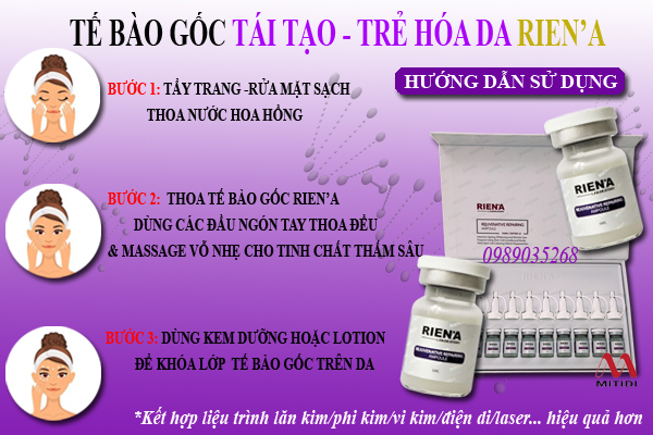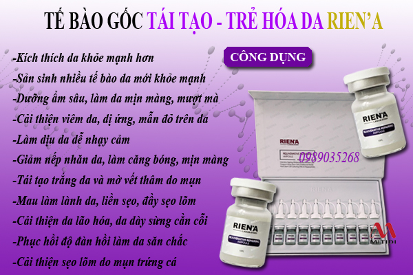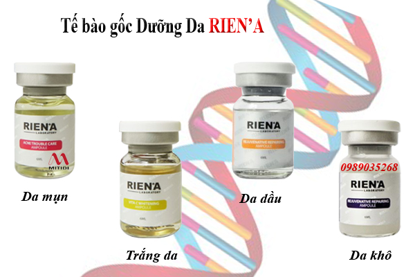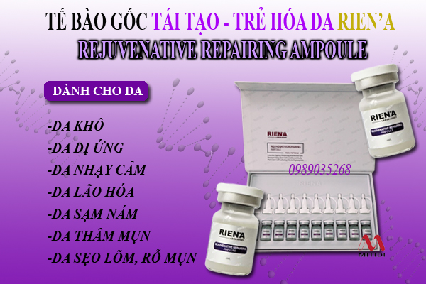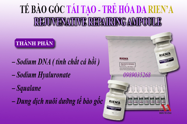 Tinh chất Riena Rejuvenative Repairing Ampoule (dành cho da khô) chiết xuất từ tế bào thực vật. Theo rất nhiều nghiêm cứu về tế bào gốc chưa tìm ra trường hợp nào khi cấy tế bào gốc mà bị đào thải ra ngoài. Tác dụng của tế bào gốc Ampoule kéo dài tời 12 tháng.