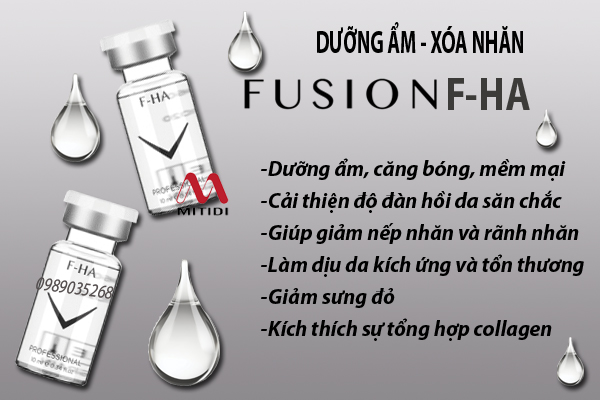 Fusion F-HA với thành phần chính là Hyaluronic Acid là phương pháp phục hồi tối ưu với da khô, giúp cung cấp độ ẩm, cải thiện độ săn chắc và giúp da căng mọng, mềm mại hơn. Mất nước và mất cấu trúc là những dấu hiệu của da lão hóa, từ đó dẫn đến sự hình thành nếp nhăn và chùng xuống ở một số vùng da mặt. Hyaluronic Acid cải thiện sự gắn kết tế bào, tránh mất nước và kích thích sự tổng hợp Collagen I, từ đó da được giữ ẩm, làm căng bóng, nhìn trẻ hơn, mềm mại và săn chắc hơn.