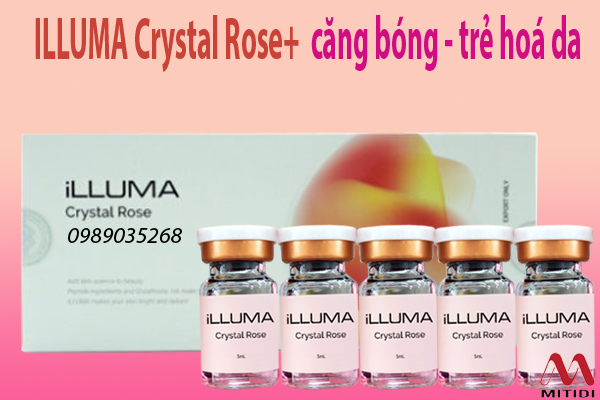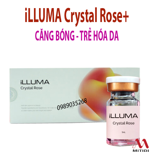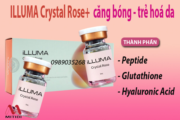 iLLUMA Crystal Rose+ là một loại ống tinh chất cô đặc có chứa Peptide, Glutathione và Hyaluronic Acid làm thành phần chính.