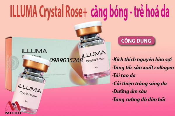iLLUMA Crystal Rose phục hồi sinh học giúp: Kích thích nguyên bào sợi Kích thích collagen, Tác dụng chống gốc tự do.