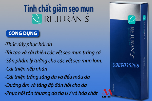 Rejuran S giúp làm giảm sự xuất hiện của sẹo mụn bằng cách thúc đẩy quá trình tái tạo collagen và chữa lành cấu trúc da. Rejuran S có độ nhớt và dạng gel, hoạt động như chất làm đầy để lấp đầy các vết sẹo lõm, đồng thời, các đặc tính trẻ hóa của Rejuran S sẽ phục hồi da ở lớp hạ bì.