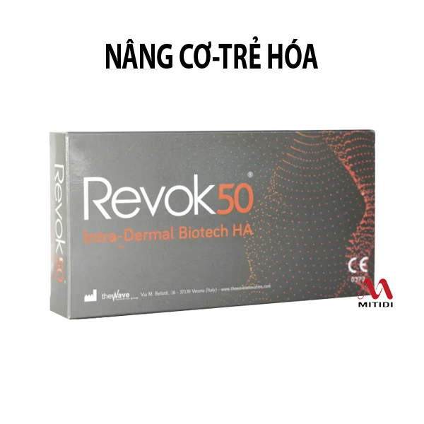 Tinh chất trẻ hóa da nội sinh REVOK50 là sản phẩm tiêm da dạng gel vô trùng, được thiết kế đặc biệt cho tiêm nội bì. Với nồng độ cao gấ 2,5 lần so với các sản phẩm hiện có khác trên thị trường. Công thức của sản phẩm có tác dụng chống lão hóa bằng cách thúc đẩy kích thích và phục hồi mô liên kết của da, đồng thời đảo ngược các thay đổi dinh dưỡng của da bao gồm nếp nhăn, sẹo, vết rạn da, v.v.