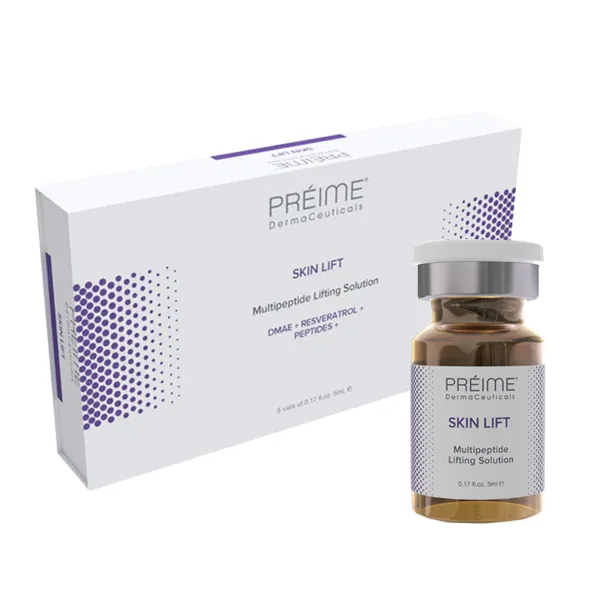 PRÉIME™ SKIN LIFT Multipeptide Lifting Solution chứa công thức với sự kết hợp giữa các peptides và chất chống oxy hóa mạnh mẽ, giúp tăng sinh các sợi chun và đàn hồi trong da, cải thiện nếp nhăn trên bề mặt, phục hồi sự săn chắc cho làn da chùng nhão, chảy xệ do lão hóa da gây ra.
