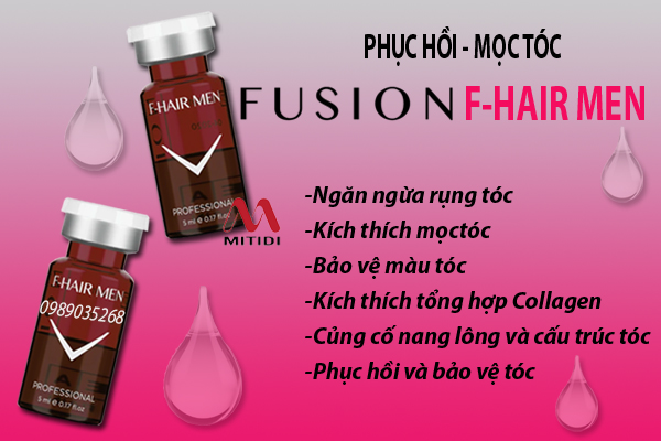 Tiinh chất mọc tóc Fusion F- Hairmen phục hồi rụng tóc hiệu quả với sự kết hợp từ các peptides, các yếu tố tăng trưởng, silica hữu cơ, panthenol và acid hyaluronic. F-Hair Men duy trì hoạt động tế bào gốc nang lông (HFSC), điều chỉnh DHT thông qua ức chế hoạt động reductase 5 kích thích đổi mới ECM, tổng hợp protein và giảm các cytokine gây viêm. Acetyl tetrapeptide-3 là một hoạt chất mới, kết hợp 4 peptides sinh học amino acid được cấp bằng sáng chế với chiết xuất cỏ ba lá đỏ giàu Biochanin A.
