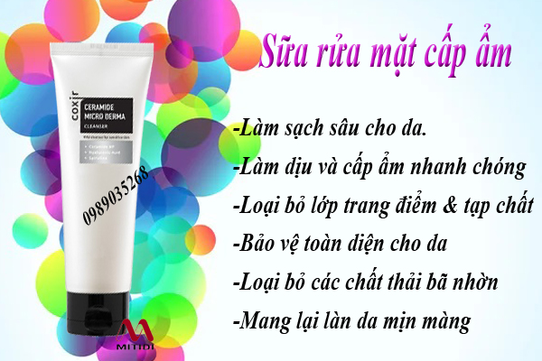 Sữa rửa mặt cấp ẩm Ceramide Coxir được sử dụng để loại bỏ lớp trang điểm, tế bào da chết, dầu, bụi bẩn, và các loại chất ô nhiễm khác từ da trên mặt. Giúp rửa sạch lỗ chân lông và ngăn ngừa các tình trạng da như mụn trứng cá.”