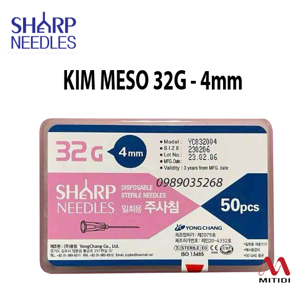 Kim Mesotherapy 32G - 4mm là sản phẩm có công nghệ sản xuất đầu kim siêu nhỏ vượt bật trong tất cả sản phẩm kim tiêm của Sharp Needles và cũng là sản phẩm kim meso có thiết kế đầu kim nhỏ hơn tất cả các loại kim trên thị trường hiện nay. Là loại kim meso tối ưu để đi những dòng tinh chất có cấu tạo lỏng.