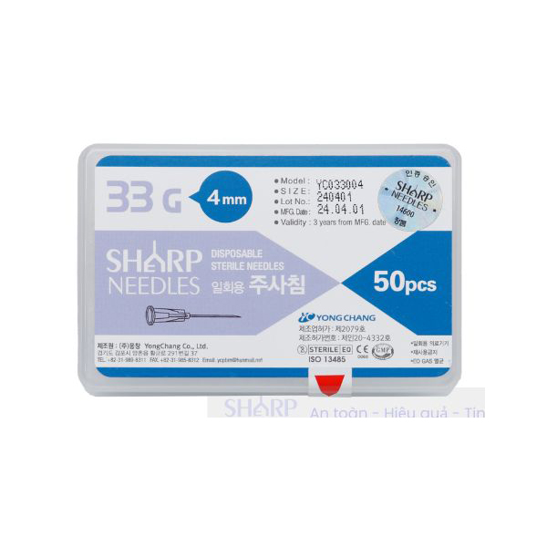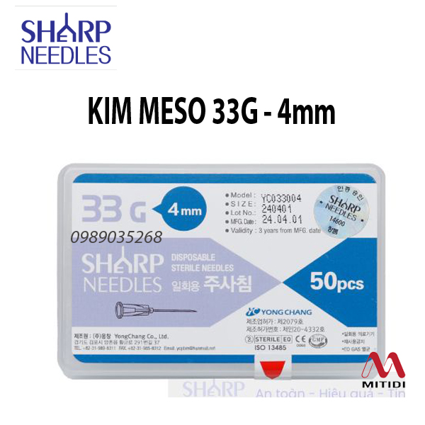 Kim Mesotherapy 33G - 4mm là sản phẩm có công nghệ sản xuất đầu kim siêu nhỏ vượt bật trong tất cả sản phẩm kim tiêm của Sharp Needles và cũng là sản phẩm kim meso có thiết kế đầu kim nhỏ hơn tất cả các loại kim trên thị trường hiện nay. Là loại kim meso tối ưu để đi những dòng tinh chất có cấu tạo lỏng.
