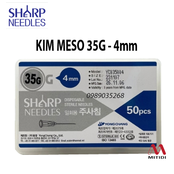 Kim Mesotherapy 35G-4mm là sản phẩm có công nghệ sản xuất đầu kim siêu nhỏ vượt bật trong tất cả sản phẩm kim tiêm của Sharp Needles và cũng là sản phẩm kim meso có thiết kế đầu kim nhỏ hơn tất cả các loại kim trên thị trường hiện nay. Là loại kim meso tối ưu để đi những dòng tinh chất có cấu tạo lỏng.