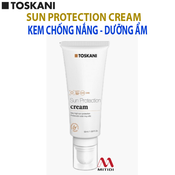 Kem chống nắng Sun Protection SPF50+ TOSKANI tích hợp đa năng 2 in 1 vừa chống nắng vừa dưỡng ẩm, giúp làn da tránh tình trạng lão hóa sớm và tổn thương tế bào lâu dài. Đây là loại chỉ định dùng trong các vấn đề liên quan sắc tố và làm trắng.
