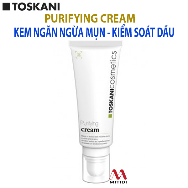 Kem ngăn ngừa mụn vả kiểm soát dầu Purifying Cream TOSKANI là một loại nhũ tương được thiết kế để sử dụng hàng ngày cho da dầu và da mụn. Các thành phần hoạt tính của kem phối hợp với nhau để ngăn ngừa tình trạng dày sừng, đồng thời kiểm soát vi khuẩn và thúc đẩy làn da khỏe mạnh và đủ ẩm hơn. Loại kem này liên tục làm sạch da bằng cách tác động trực tiếp vào nguồn sản sinh bã nhờn và tẩy tế bào chết nhẹ nhàng trong khi vẫn duy trì độ ẩm cần thiết cho da. Không chứa dầu và có kết cấu nhẹ, Purifying Cream kiểm soát các nốt mụn và ngăn ngừa mụn tái phát, đồng thời giảm kích ứng da và đẩy nhanh quá trình lành vết thương.