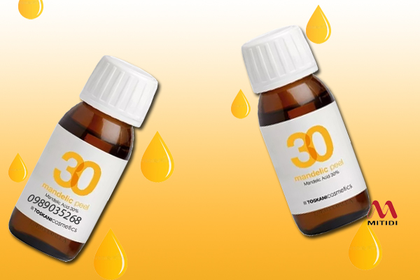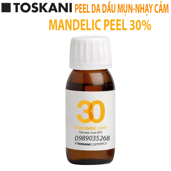 Peel da Mandelic Peel 30% TOSKANI da dầu mụn, nhạy cảmlà sản phẩm lột da hóa học dịu nhẹ có thành phần là axit mandelic, ít gây kích ứng hơn so với các loại AHA khác, có lợi cho những người có làn da nhạy cảm, dễ bị mụn.